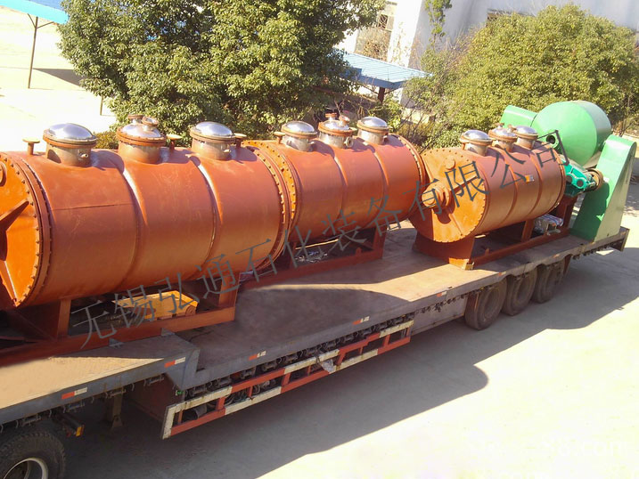 It enjoys advantages as easy & convenient operation, long life circle, stable & reliable performance, low steam consumption, strong adaptability and good quality which are especially applicable for drying paste materials which cannot resist high temperature, flammable and is easy to be oxidized under temperature adjusting. It is proved to be a good drying device after long-time use by the users. The principles are: add the materials to be dried from middle of upper part of the shell body. The materials move in axial direction back and forth under positive and negative rotation of the rake (stirring). The surface which contacts with inner wall of the shell keeps renewing. Under indirect heating of the steam, even stirring by the rake and crushing by the crushing bar, it is easier for water on material surface to be discharged. The gasified water is emptied at outlet of vacuum pump by dry-type collector, wet type collector and condenser.